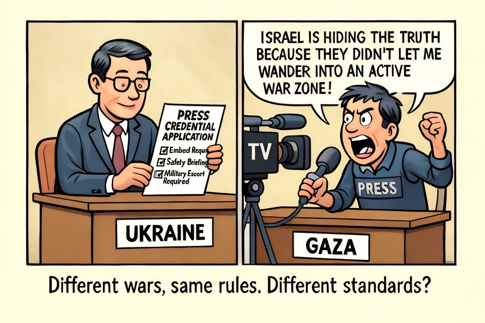 War reporting is vital—but it’s not a free-for-all. Journalists don’t just show up to the frontlines, flip on a camera, and start broadcasting. In every modern war—from Ukraine to Iraq—access is controlled, dangerous, and requires coordination with military and government authorities. But when it comes to Gaza, international media and journalists like Piers Morgan suddenly pretend none of this applies.